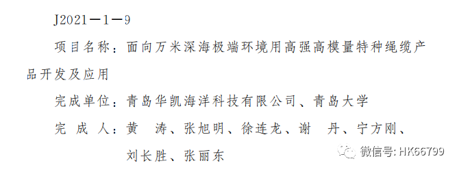 12月8日上午,青島市科技創(chuàng)新大會(huì)在市級(jí)機(jī)關(guān)會(huì)議中心召開,對(duì)獲得2021年度市科學(xué)技術(shù)獎(jiǎng)的項(xiàng)目和人員進(jìn)行表彰獎(jiǎng)勵(lì)。青島華凱海洋科技有限公司“面向萬米深海極端環(huán)境用高強(qiáng)高模量特種繩纜產(chǎn)品開發(fā)及應(yīng)用”項(xiàng)目榮獲青島市科學(xué)技術(shù)進(jìn)步一等獎(jiǎng)。